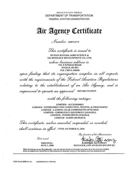 In June 2006, the company passed the FAA audit.